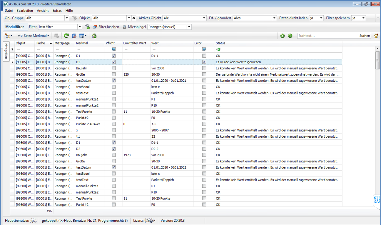 | Es wurde ein neuer Merkmalswert für die Basismiete hinzugefügt. | Es werden neue Zeilen für den neuen Merkmalswert angelegt. Die bereits erfassten Daten für die anderen Merkmale bleiben erhalten. |