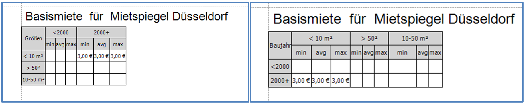 Keine Besonderheiten. Dieses Modell sollte für fast alle Mietspiegel benutzt werden.