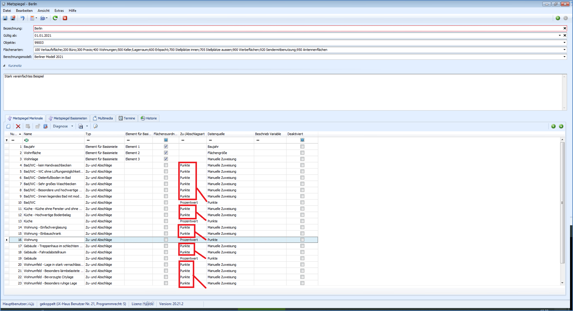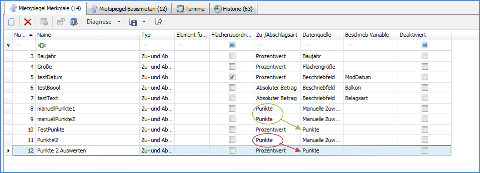 Es kann in einem Mietspiegel auch unterschiedliche Punkte geben, die unabhängig voneinander benutzt werden können. In diesem Fall benutzt jede Datenquelle jeweils die Punkte, die oberhalb einsortiert worden sind.