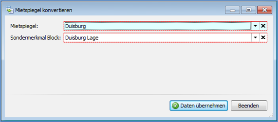 Daher wurde eine Funktion implementiert, mit der die Mietspiegel-Mieten in den Flächenstamm eingetragen werden können.
