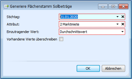 Die ermittelten Mieten aus dem Mietspiegel für eine Fläche entsprechen den Sollbeträgen, die im Flächenstamm für eine Fläche anlegt werden können.