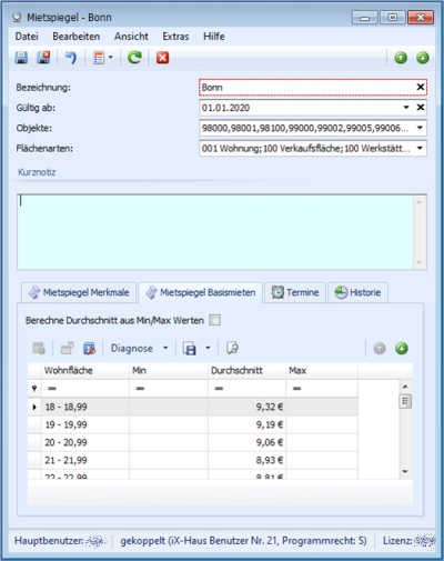 Damit müssen beim Erfassen der Basismiete immer alle drei Werte eingegeben werden. Das Ergebnis wird als Durchschnittsmiete ausgegeben.