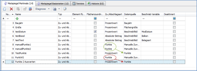 Wichtig ist dabei die Reihenfolge der Merkmale, die mit dem Feld Nummer eingestellt wird. Um Punkte zu benutzen, müssen diese vor der Benutzung definiert werden. Punkte, die nach der Benutzung einsortiert sind, werden nicht ausgewertet. Das System zeigt einen Hinweistext an, wenn das der Fall sein sollte.