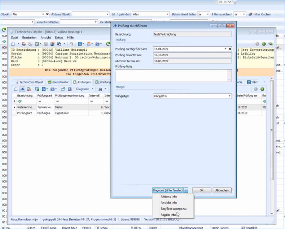 Im Vorfeld weisen wir darauf hin, dass der Scheduler zwar auch in einem iX-Haus Testsystem laufen KANN, aber bestenfalls dort nicht eingerichtet ist, um Überschneidungen von Daten zwischen Produktiv- und Testsystem zu vermeiden. In den Aufgaben ist hierzu ein Feld relevant, wo es sich ggf. lohnt zu prüfen, ob hier vielleicht eine ungünstige Wahl getroffen wurde (ich denke, das kann dann schnell zu einem Consulting-Thema werden, wenn ein Mischbetrieb 'gewünscht' ist). Feld iX-Haus Zielsystem n der Detailsicht der Aufgabenplanung. Die Auswahl ist nur sichtbar, sofern ein eingerichtetes Testsystem vorliegt.